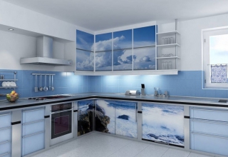 Кухня со сборными фасадами, отделанными суперматовым ПВХ пластиком. Возможно исполнение "МДФ+Матовая Эмаль".Столешница - водостойкое ДСП, ламинированное HPL пластиком.